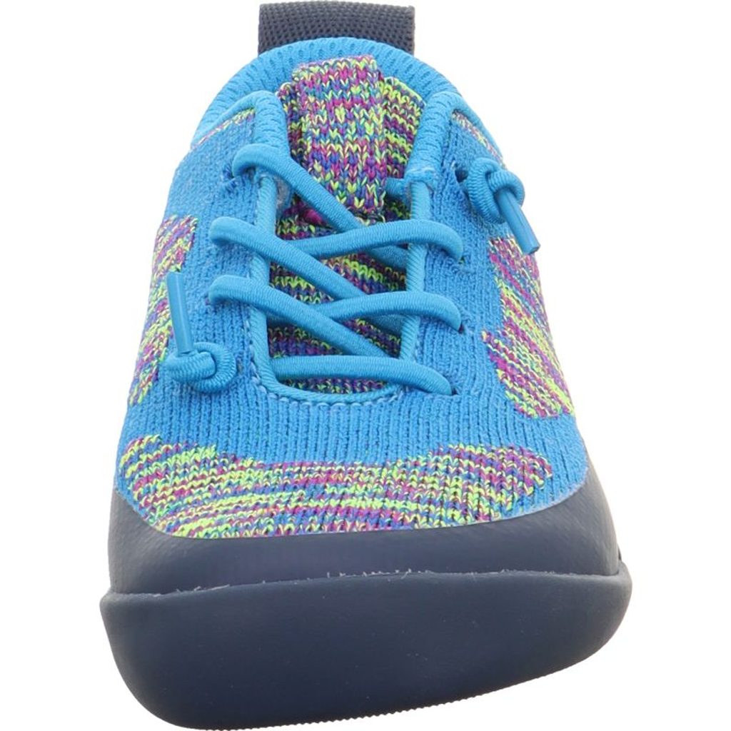 A textil és szintetikus felsőrész a markáns neoprén elemeknek és a melírozott hatású kötött anyagnak köszönhetően rendkívül jól szellőzik és látványos. A lélegző textil bélés kellemes klímát biztosít a cipőben, míg a kivehető, krómmentesen cserzett bőrből készült talpbetét növeli a viselési komfortot. A praktikus rugalmas fűző megkönnyíti a felvételt, és jól tartja a cipőt a lábon.