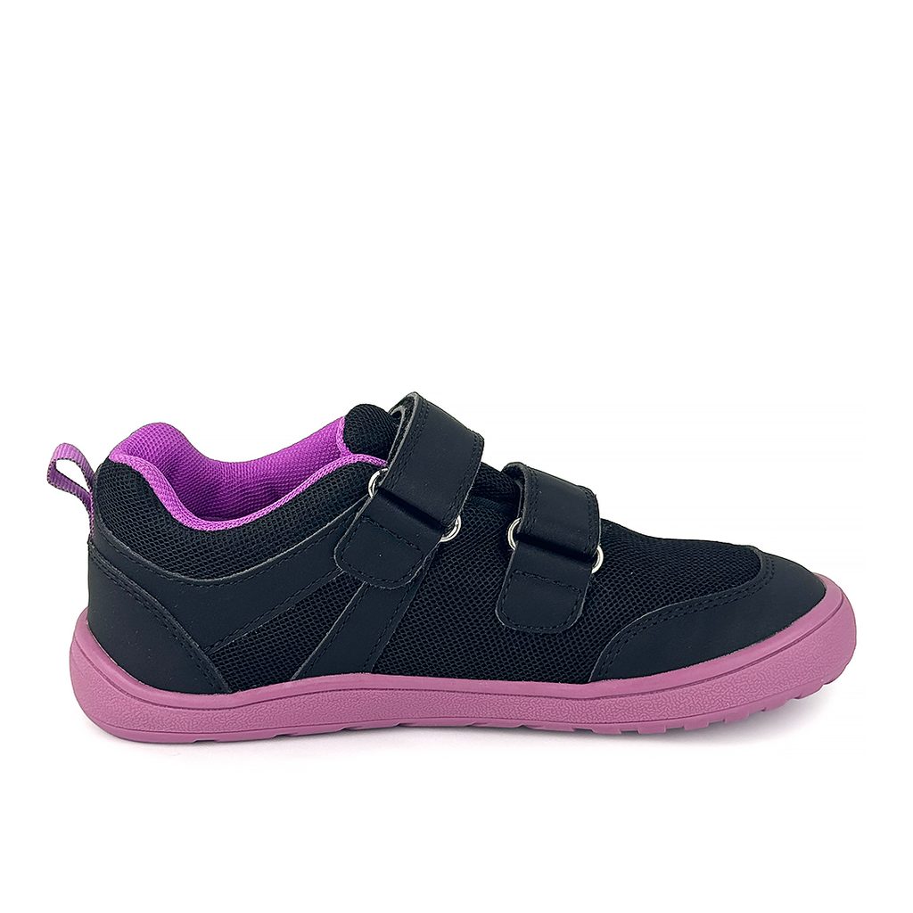 Modern barefoot sportcipő vonzó fekete-lila színkombinációval, amely ötvözi a kényelmet, a stílust és a természetes járás egészségügyi előnyeit. Ideális választás aktív lányok számára, akik minden napot teljes mértékben szeretnének megélni.