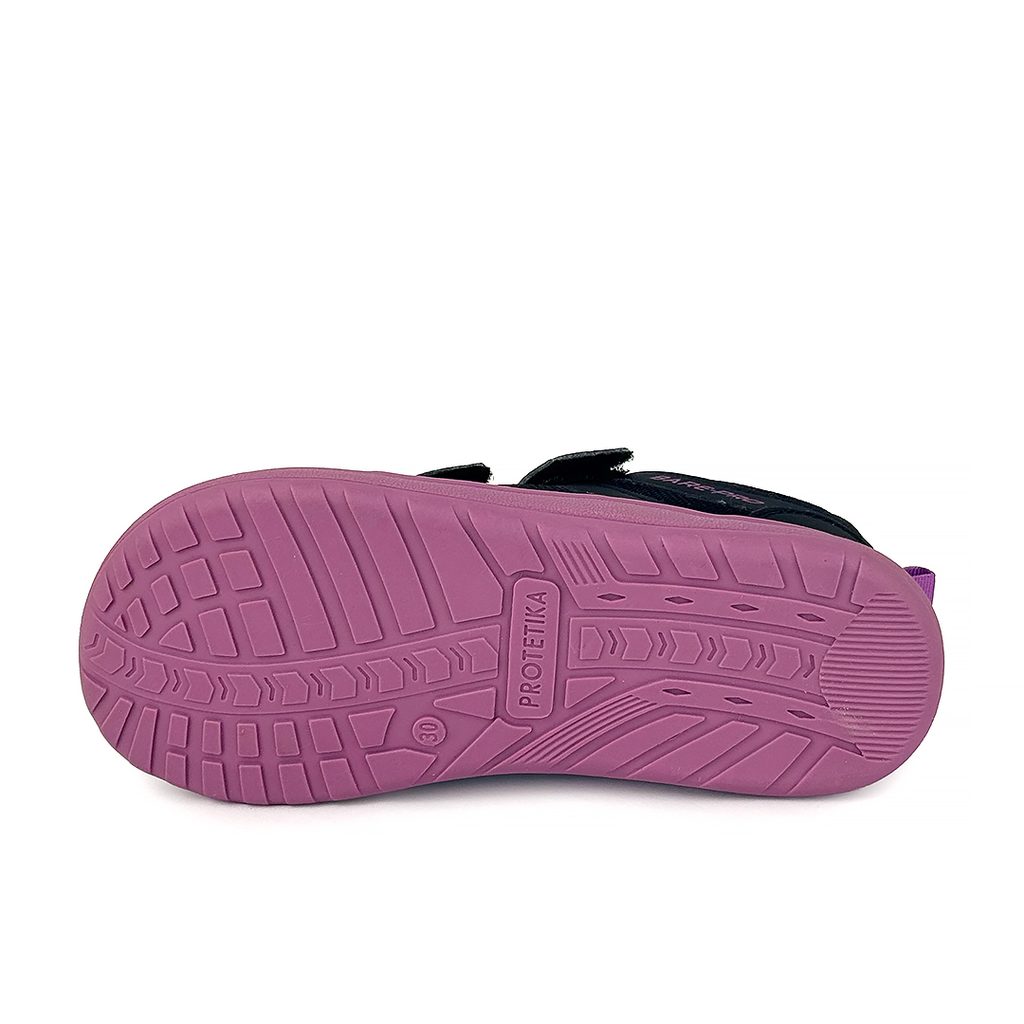 Protetika lány barefoot cipő membránnal NOLAN PURPLE | egész évben használható gyerekcipő tépőzárral | lila, boltozat nélküli sportcipő rugalmas talppal