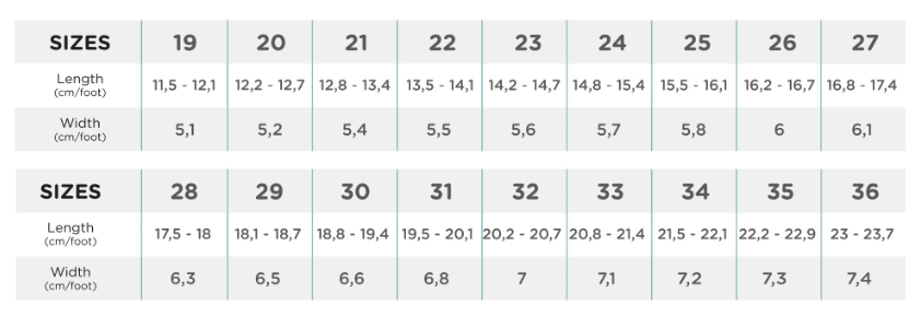 | Cipő szélessége | szélesség M - közepes |