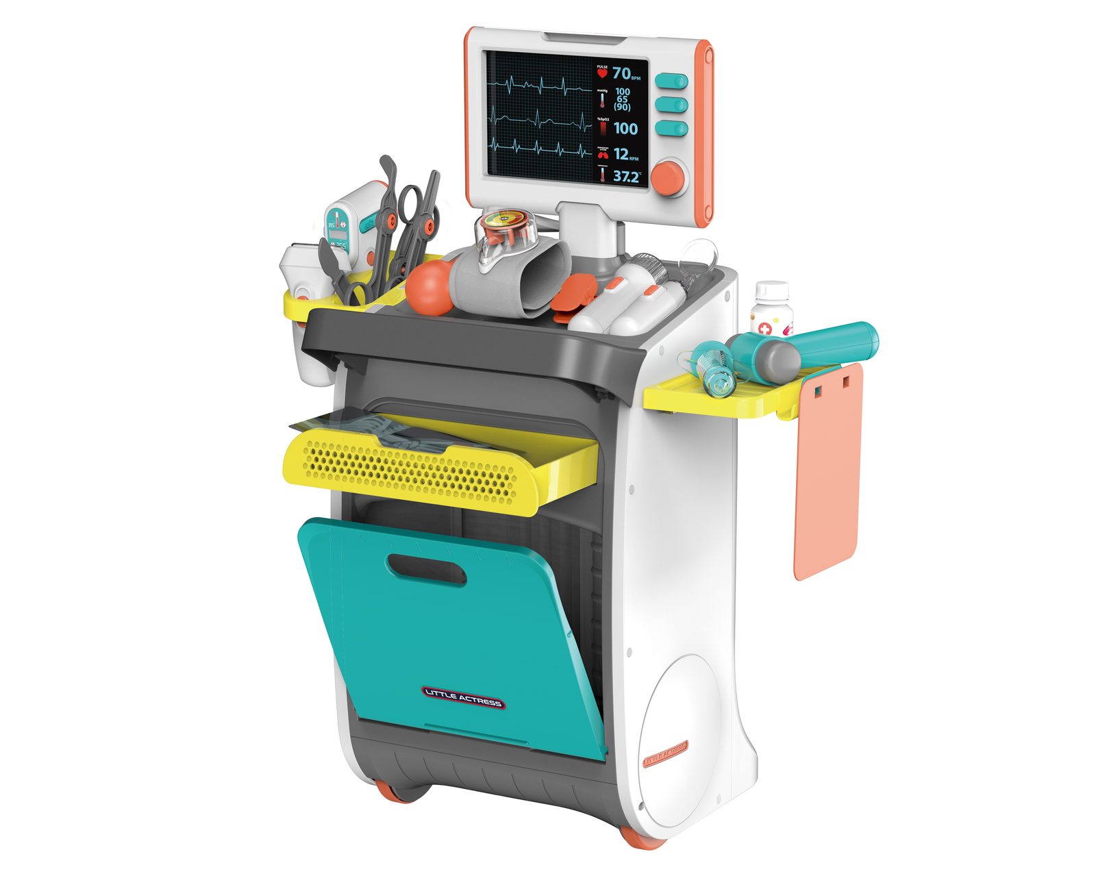 Orvosi asztal effektekkel minden kis orvosnak és doktornak, melynek köszönhetően a gyermek fejlődik és megismeri az orvosi eszközöket.